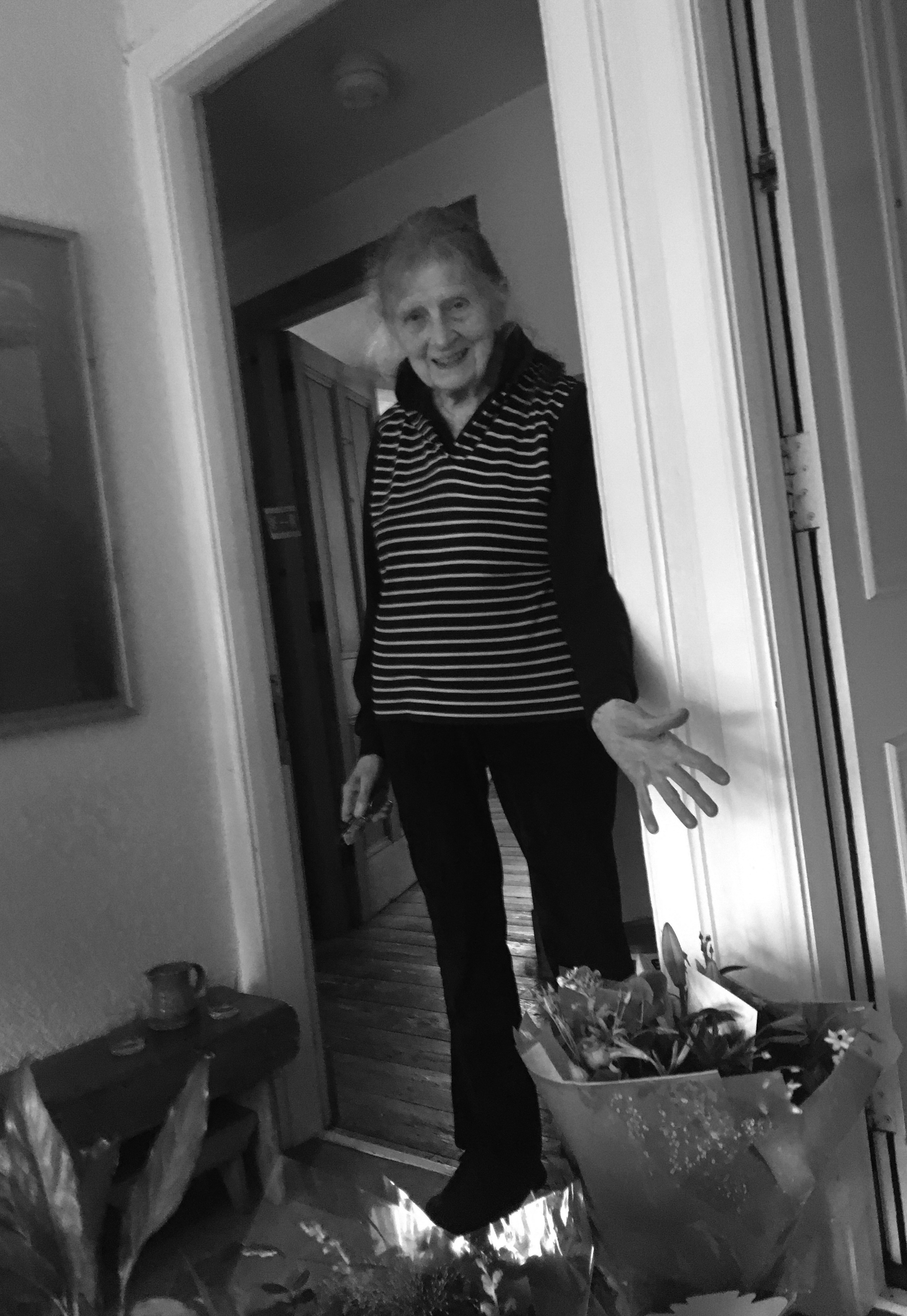 receiving flowers in honour of her CBE, 2020 by David McCracken