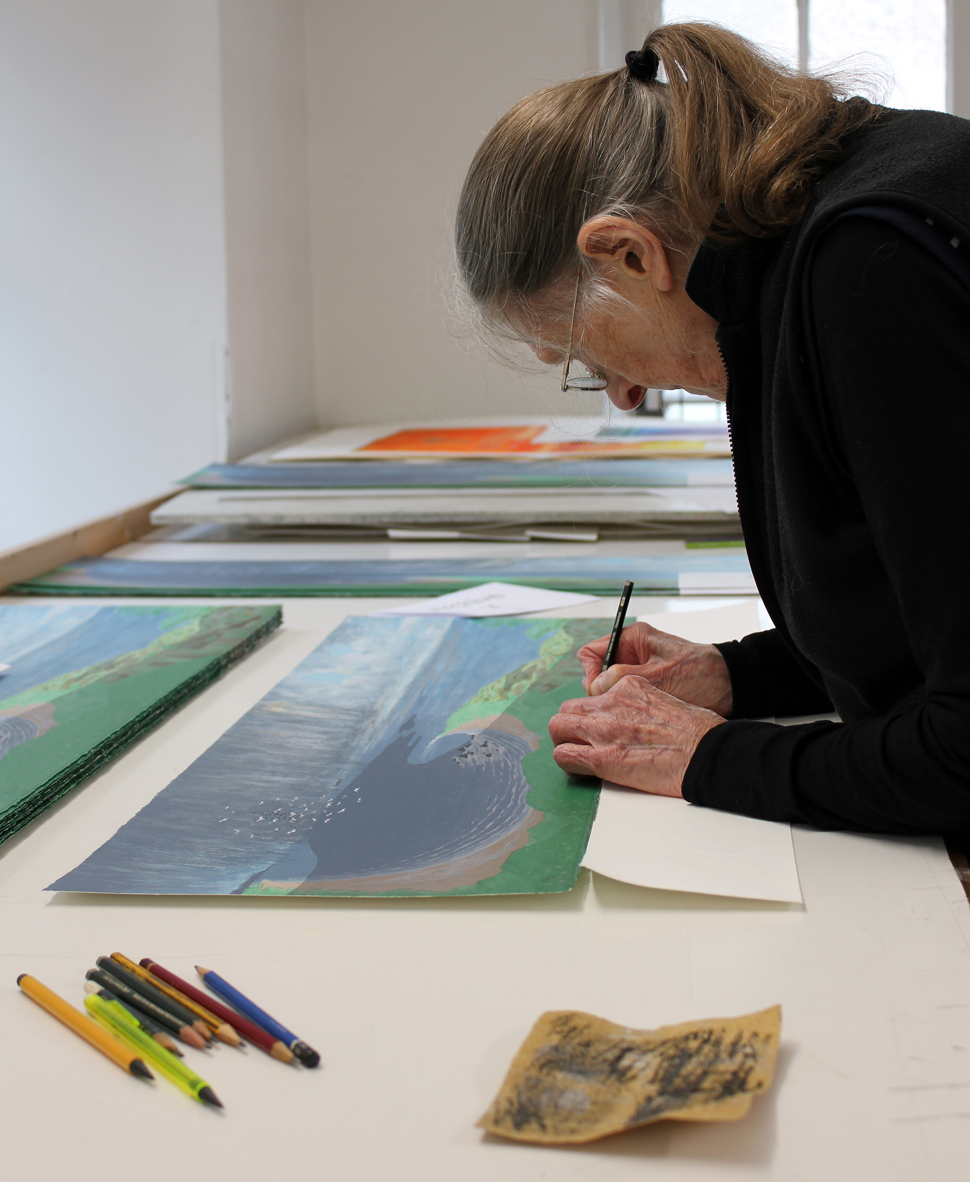 We have grown up together. In acknowledgement we have a yearlong programme of events planned, including new editions, talks, demonstrations and an exhibition in 2021. We are honoured Frances has accepted the dedication of naming our main printmaking workspace. We recognise Frances in the knowledge her art will inform and inspire future generations to the value of an inclusive studio - a place that nurtures the unique voice of the individual through the teaching of printmaking. All under this one roof, here in Aberdeen. We entitle the space that has enabled so much of our mission - The Frances Walker Studio.