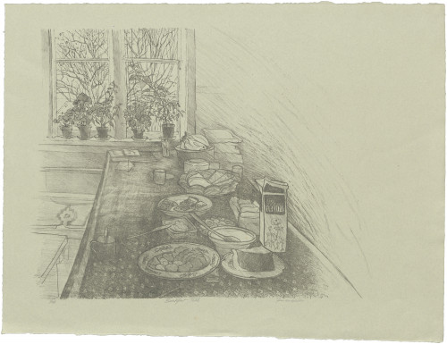 Frances was one of the founder members of Peacock Printmakers in 1974 and has continued to have a close association with the workshop ever since and is still printmaking from stone, plate and screen.