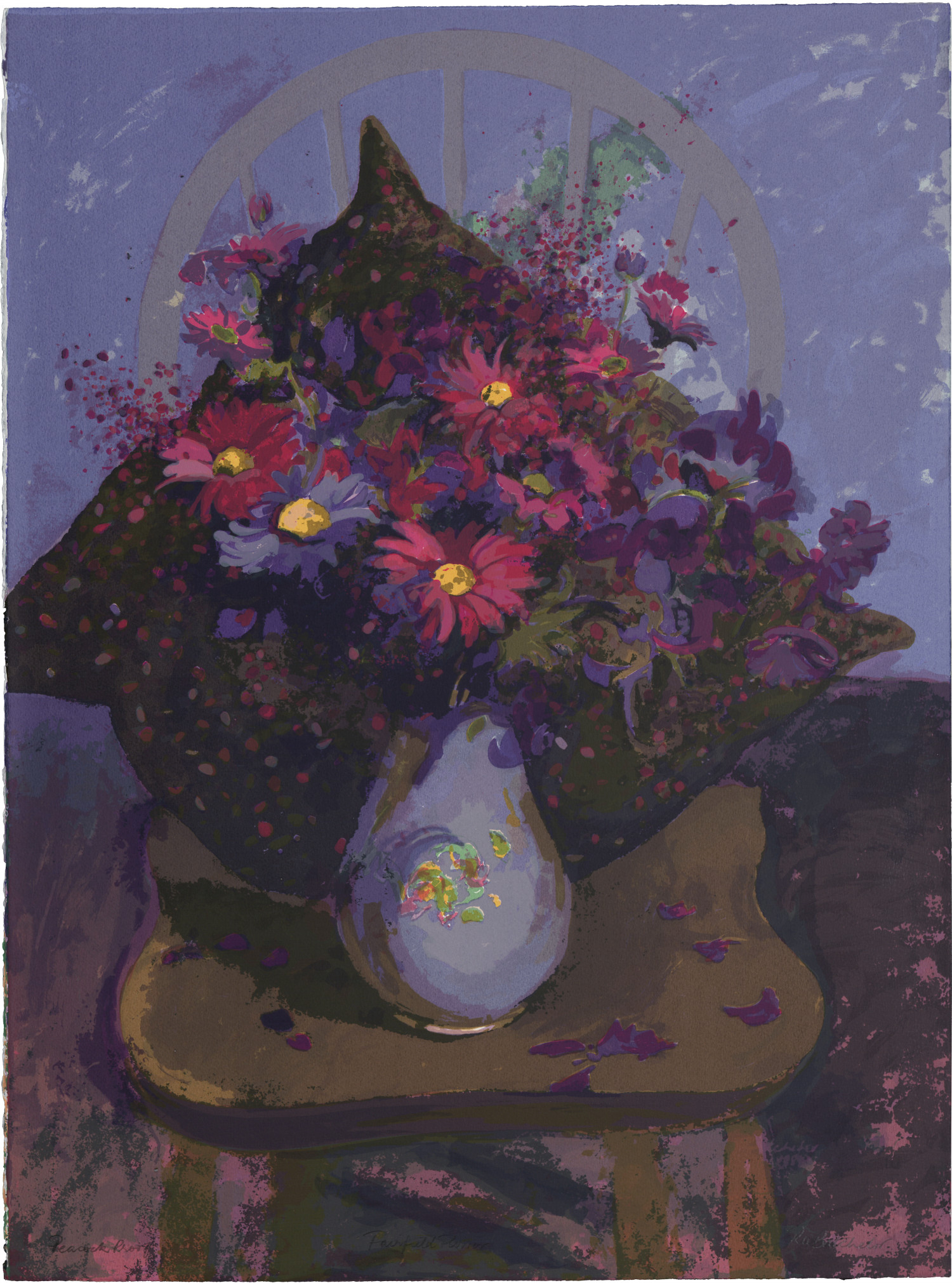 Bob Batchelor (1928 - 2010) was born and brought up in Georgetown, Guyana. He came to Scotland in 1946 to study drawing and painting at Gray’s School of Art. He considered himself to be primarily a teacher and artist second. The last 20 years of his career was spent as principal of art at Aberdeen Girls High School (now Harlaw Academy). He is known for his paintings and screen prints of the flowers in his garden. He was a founder member of Peacock Printmakers .