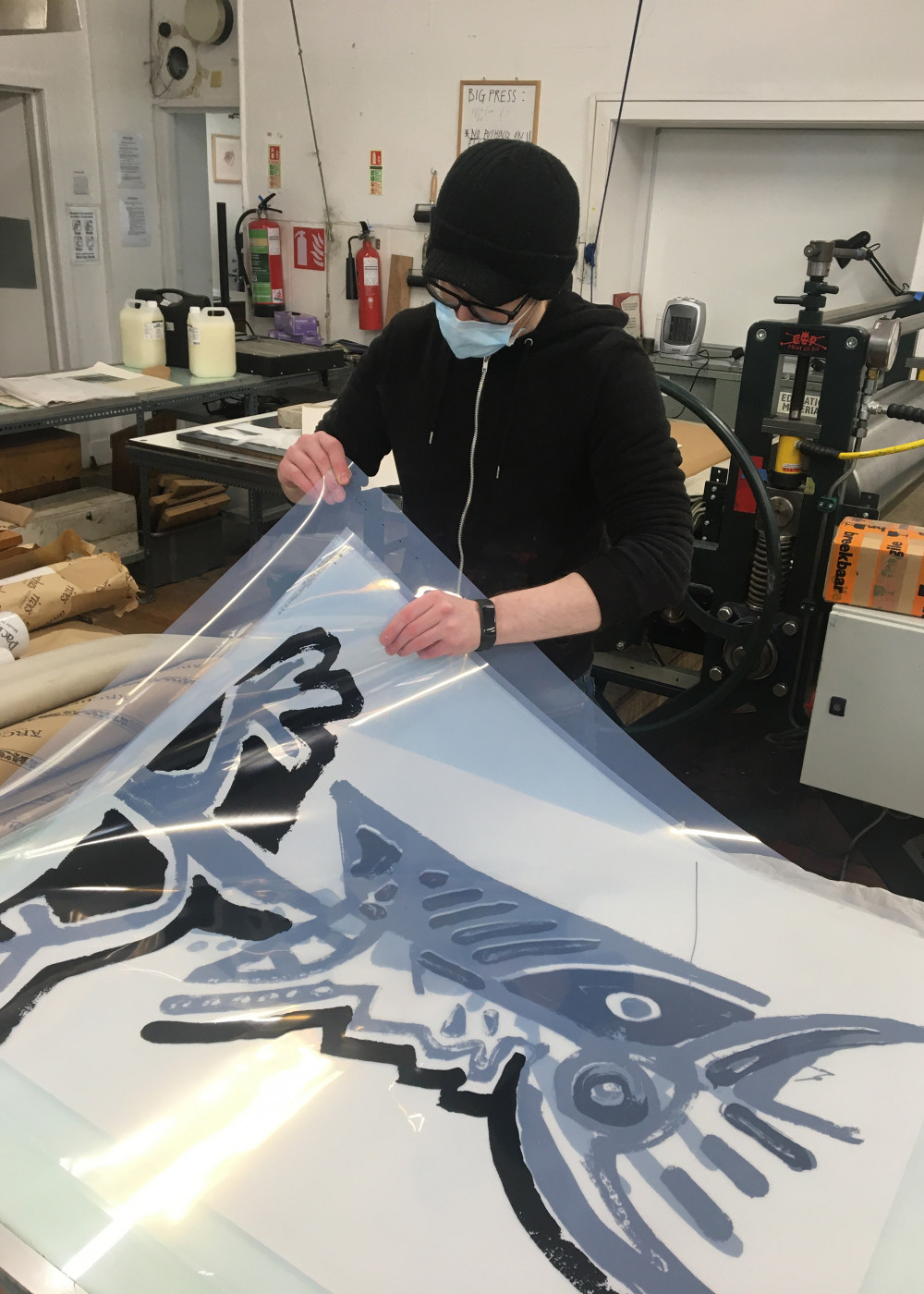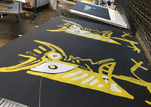 James Vass produced the print, opting to use a full black print as a base rather than black paper.