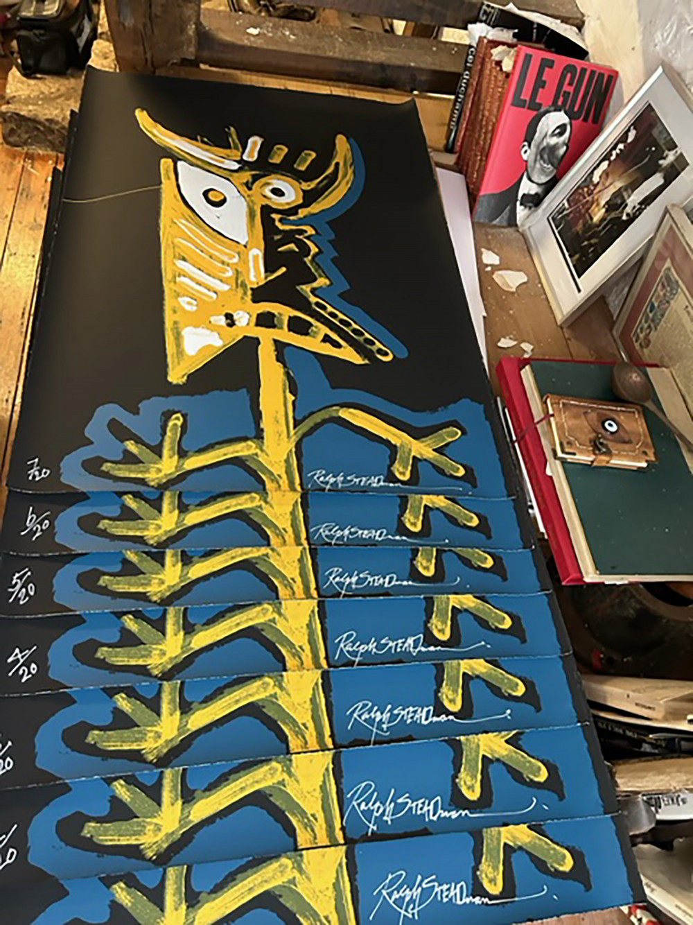 Steadman was inspired to copy his hero and was determined to go one better by creating 547 images in 5 months. We have produced several from the series, but this is by far the largest and most ambitious with its dramatic colours and attention to the subtleties of the ink intensity.
