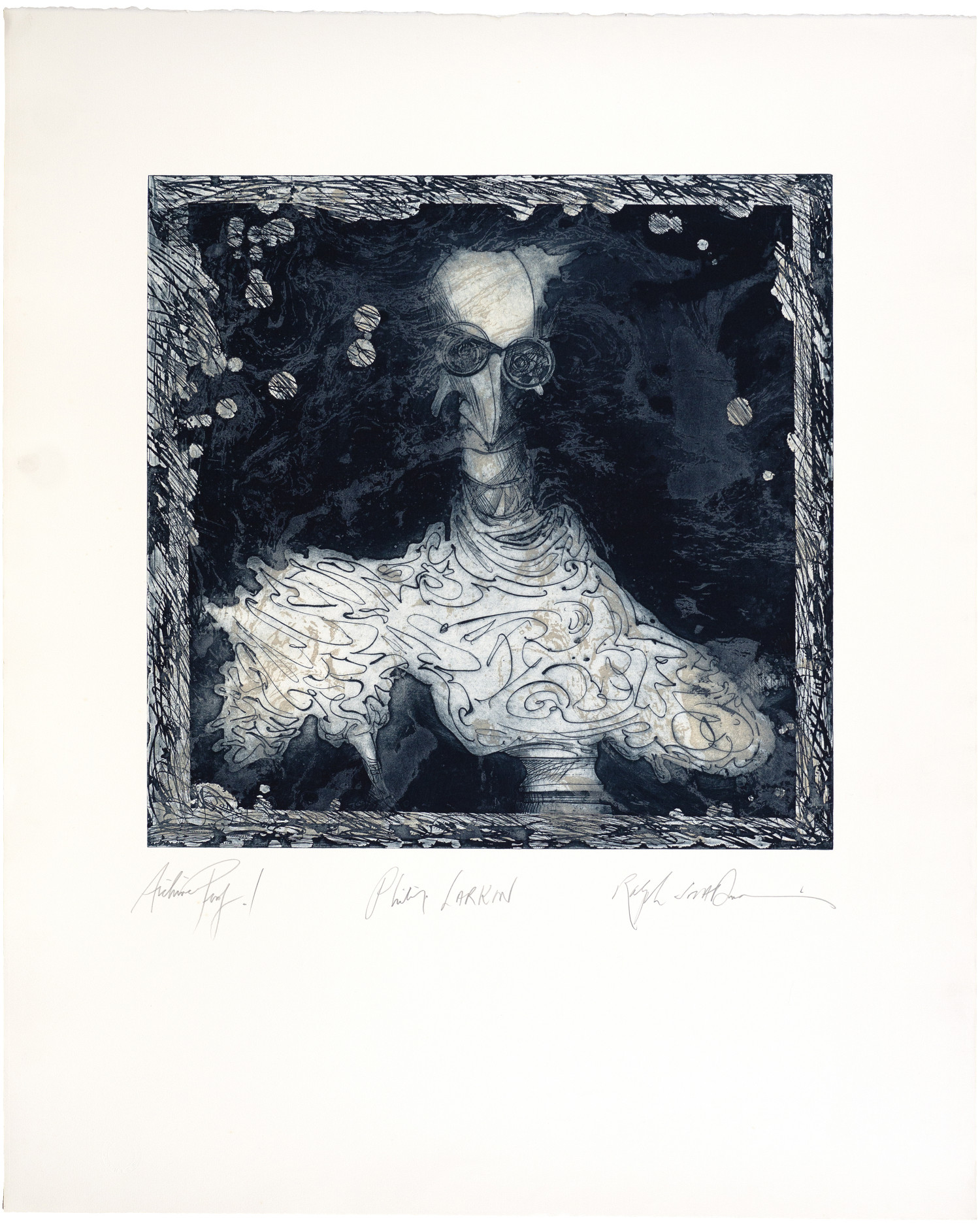 Continuation of the 'Writers Series' from 93-94. The plate was produced and proofed by Michael Agnew in 1993 and was editioned in 2002 by Michael Waight.