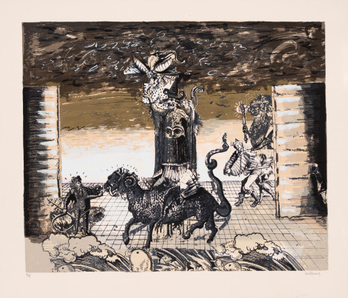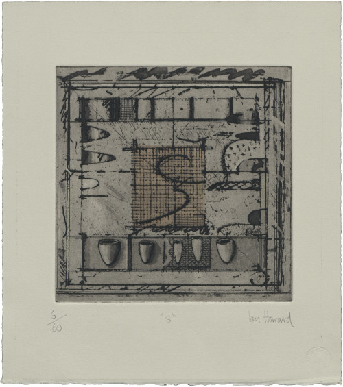 From a suite of 26 prints by 26 artists, each illustrating a letter in the alphabet. All were based in the North East of Scotland. First exhibited concurrently at Peacock Printmakers and Aberdeen Art Gallery.