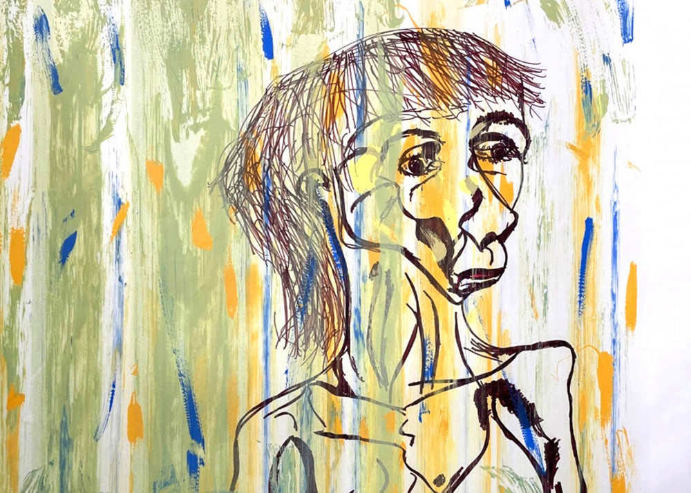 This was Joyce’s second residency at peacock, following her first one in 2021. She describes this most recent residency as a ‘highly cathartic experience,’ where she had the support of skilled printmaking and was able to concentrate fully on painting with her much-loved acrylic paints and exploring her own continuously developing way of working. Not having followed an art school training, not knowing what the rules are, she feels gives her carte blanche to break them all.