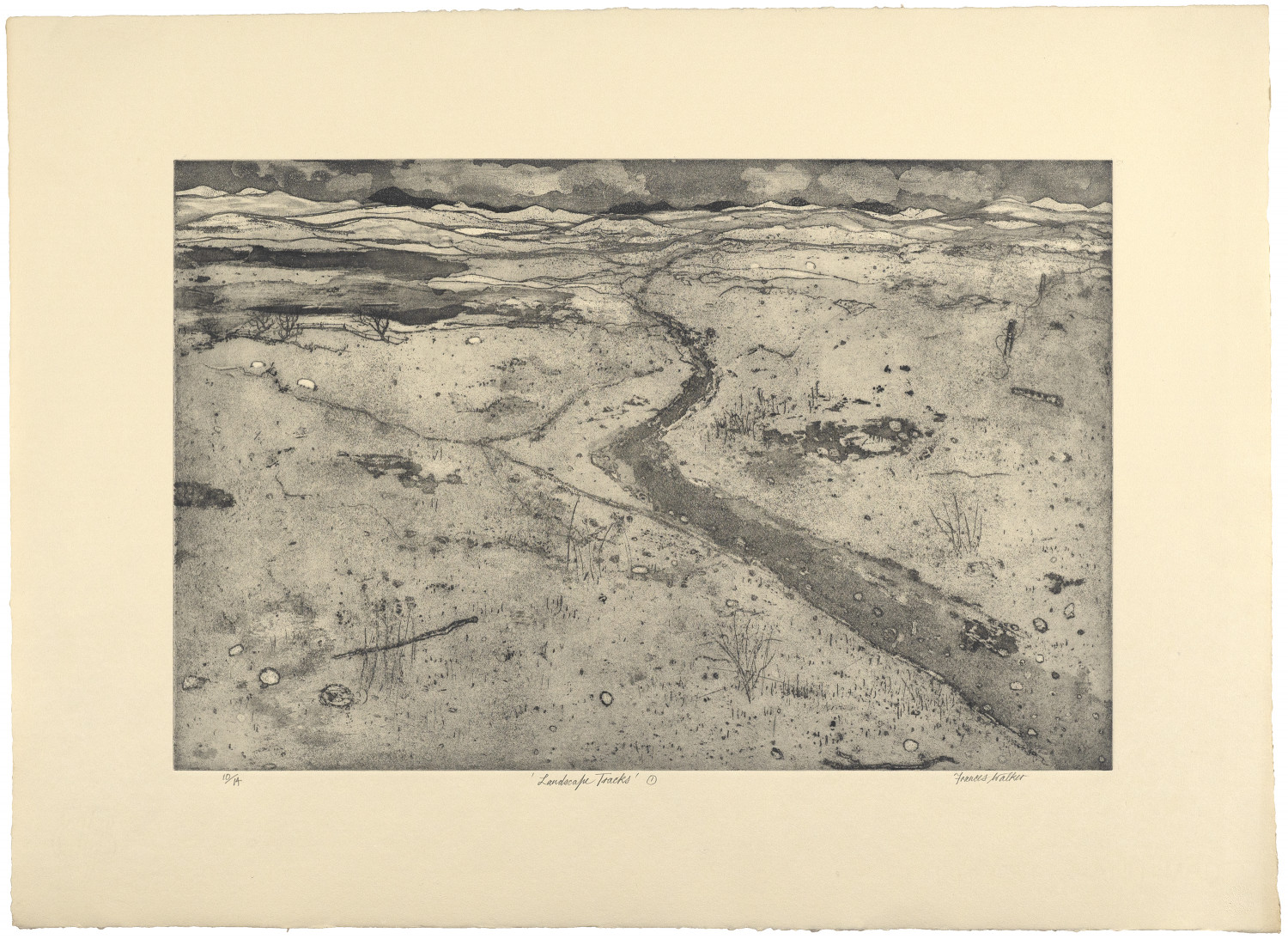 Frances Walker, Landscape Tracks 1, 2022, 810 x 600 mm, Etching, edition of 14