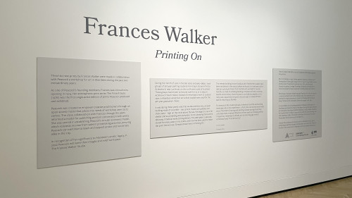 In recognition of her significance to Aberdeen’s artistic legacy, and the crucial role she has played in Peacock’s history, this year Peacock will name their main ground-floor intaglio and relief workspace after her: The Frances Walker Studio. Peacock is honoured that Frances has accepted the dedication, and is working towards unveiling the name plaque during the exhibition run.