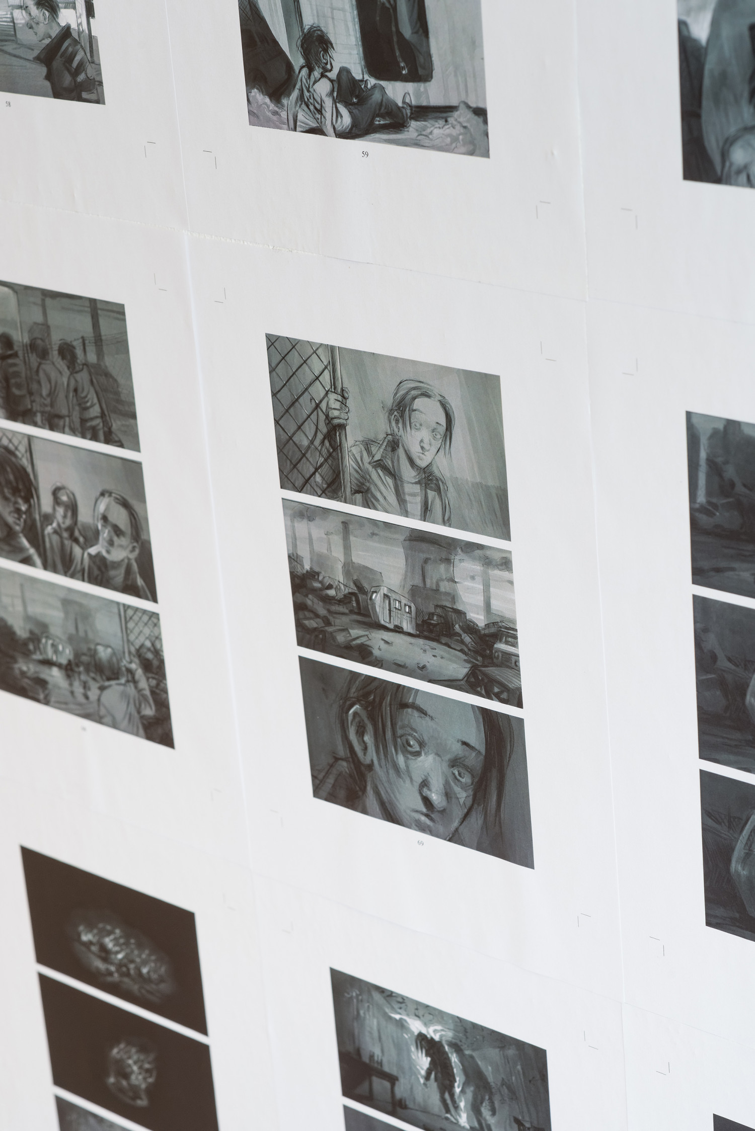 “Hulsing is an artist with an insatiable curiosity for exploring the human spirit. He is also a master storyteller and a skilled composer. One of the fundamental questions we seek to answer is how and why Hulsing chooses a particular medium to express a particular idea. Does it depend on whether it's a single idea or a series? When does he choose to create a static, two-dimensional comic and when is the idea 'valuable' enough to dedicate the more significant resources involved in making a film? If he chooses animation, how does he, as director, use movement, colour and light to drive his narrative forward? Does the idea for this narrative automatically spark into existence the characters necessary to propel the story forward?”  Susie Wilson, Curator, In Motion 2