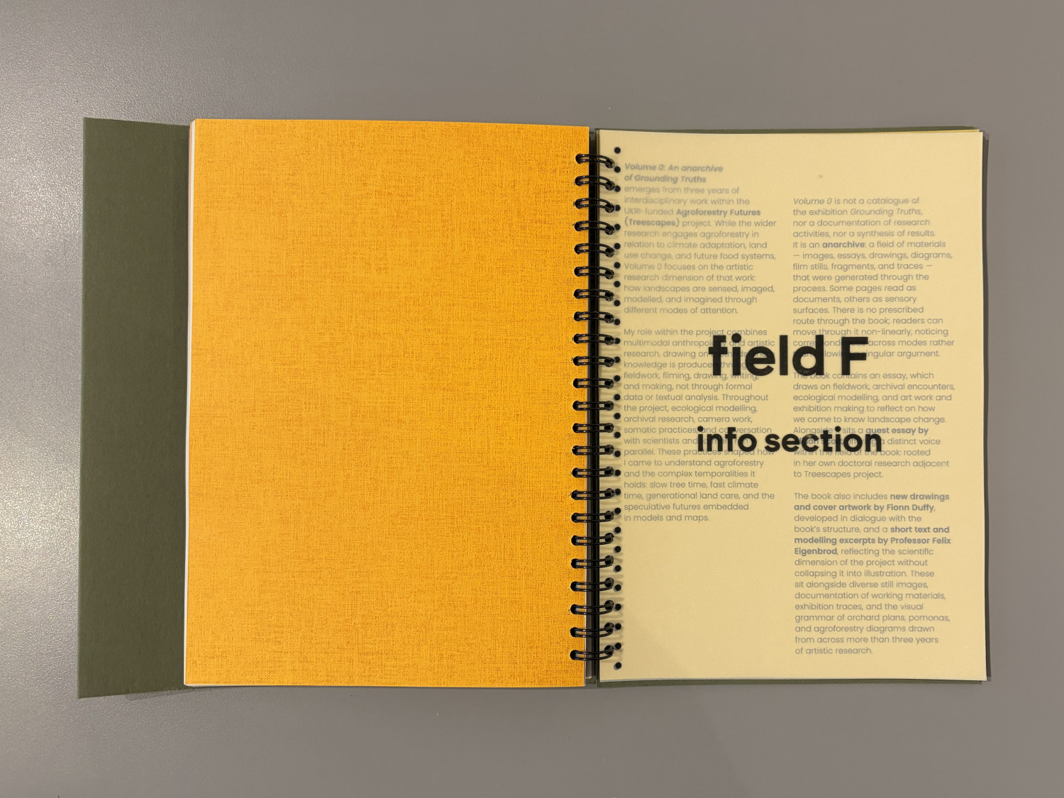 Volume 0 was developed through the UKRI-funded Treescapes (Agroforestry Futures) project. The book is by Jen Clarke (Gray’s School of Art, RGU), with contributions by artists Fionn Duffy and Alison J. Scott, design by Francisca José, and production by Neil Corall at Peacock: a workshop for art.