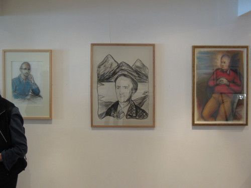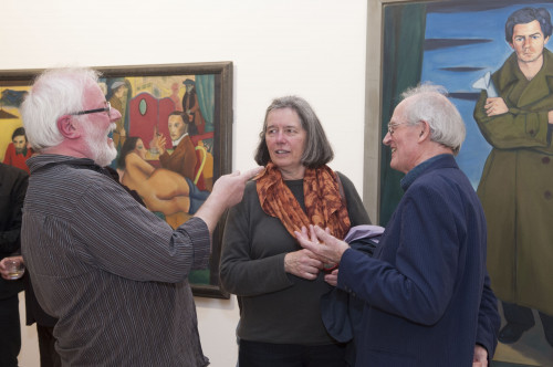 The three large paintings entitled 'Berliners' began with a portrait of Neal Ascherson in 1976 that included quotations from George Grosz, setting Neal unequivocally in Berlin, where he had been based in the 1960s while working as the Observer newspaper's East European correspondent. Afterwards the thought occurred to me that the idea could be further developed in a series of 'expanded' group portraits… contemporary history paintings if you like.