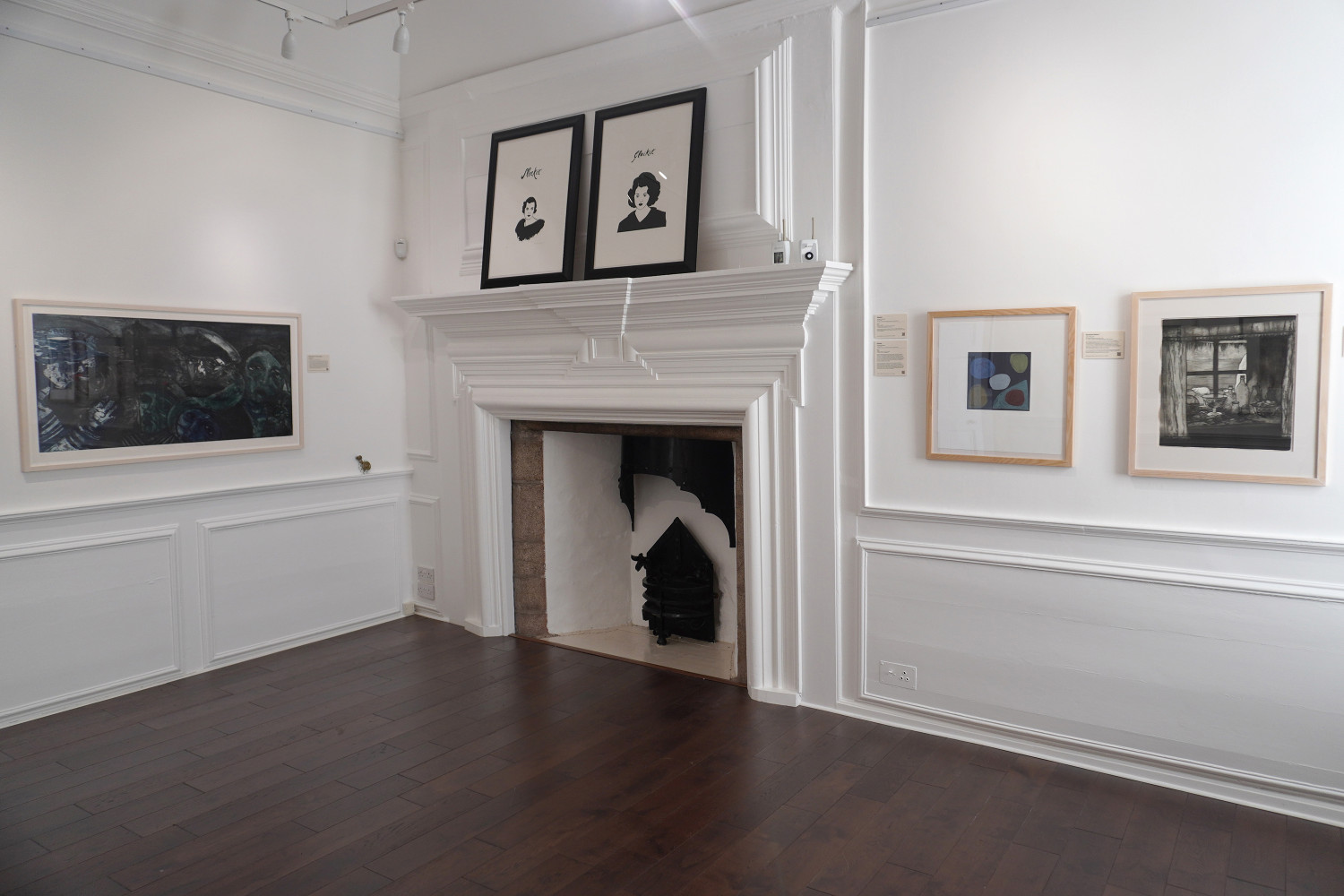 Places and portraits populate the etching room, ranging from Donald Urquhart’s sleek black and white celebrity portraits to Joyce Cairns’ lyrical narrative of Aberdeen’s Footdee. Some of the works, such as Dawson Murray or Adam Bridgeland’s prints, celebrate the serendipity of artmaking, embracing the unexpected diversions and pathways that can spring up from a dynamic, energetic workplace.