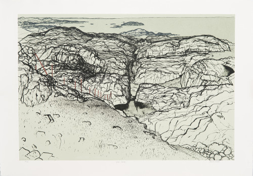 Featuring both local and international artists working at Peacock throughout its 48-year history, the exhibition brings together a wide array of works of dazzling diversity and originality, showcasing the inexhaustible expressions that printmaking can yield to. Its location at Drum Castle, in the gallery space on the top floor, as the final stop of the guided tour of the property, brings the works into a unique conversation with the historical fabric of the castle. The works are arranged into the rooms by technique, encompassing the four traditional printmaking methods as well as a range of innovation and experimentation within them.