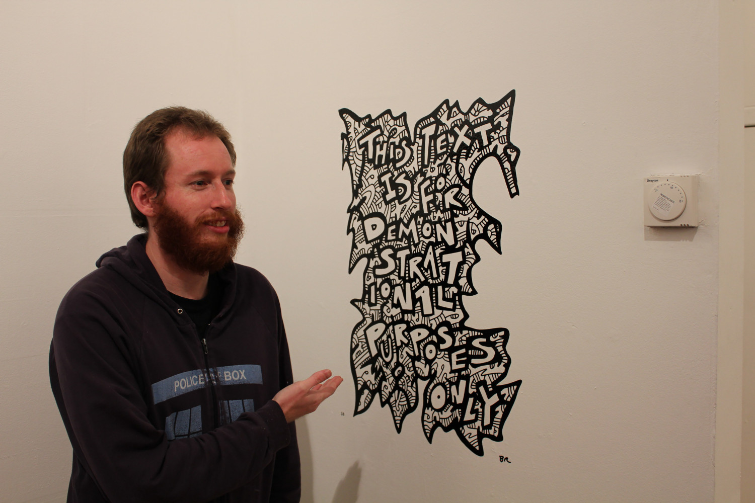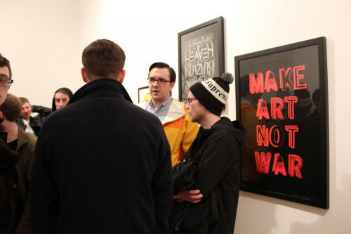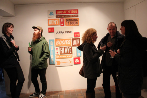 The exhibition includes work that uses text and typography in some way, by local artists Brian Ross, John Mackenzie and Neil Henderson amongst others, including a large-scale mural commissioned for the show. This work will be shown alongside established international artists Adam Bridgland, Chu, Scott Myles and many more. It will include a rich variety of disciplines from printmaking to graffiti.
