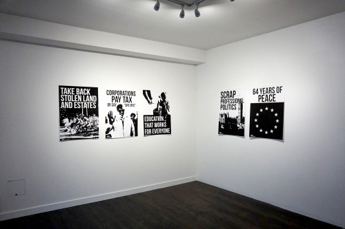 Aberdeen is the first to host ‘The Real’, a project that will continue to develop, through gallery exhibitions and public events, as it crosses Britain. At W OR M the fictional party’s ideology is presented through artworks: posters, photographs, paintings and neon. The programme includes an artist-led workshop that encourages people to plant flags stating ‘This is ours’ on things that we own in common as citizens, such as police cars, court houses, paintings in public collections, and council buildings.