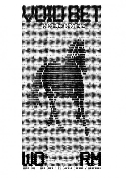 Perhaps this sense of the absurd led the Brownlee's to the exhibition's title Void Bet. When a bet is voided it is essentially as if it never happened. You don't win anything but equally you don't lose anything and the bet is entirely null, and, well, void. Gambling is bound up with the human condition but in this instance a paradox is created. The brothers help subvert ancient wisdom to modern riddle, by simply pointing out what we have always known but pay little heed to -- that you will only beat the Bookie by not taking part.