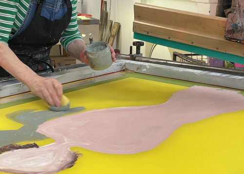 Working with printmaker James Vass participants will gain an insight into the colourful process of screen Monoprinting. Painting directly onto screens and using the screenprint process to make painterly and loosely styled images.